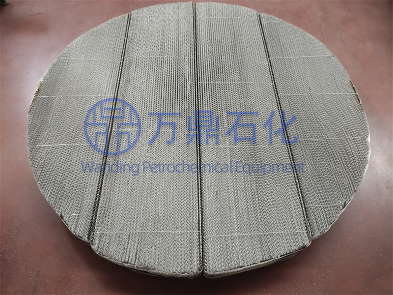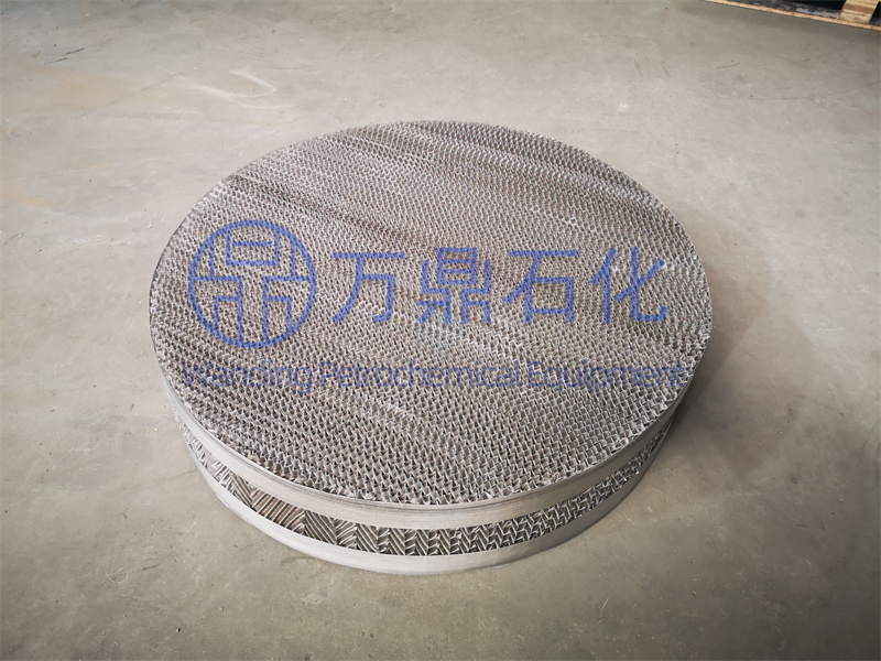 雙層絲網波紋填料是由雙層80?100目金屬絲網重疊在一起軋成波紋片,而后如同單層絲網填料一樣組裝成盤。采用短層是用以加強毛細作用達到提高分離效率的目的。